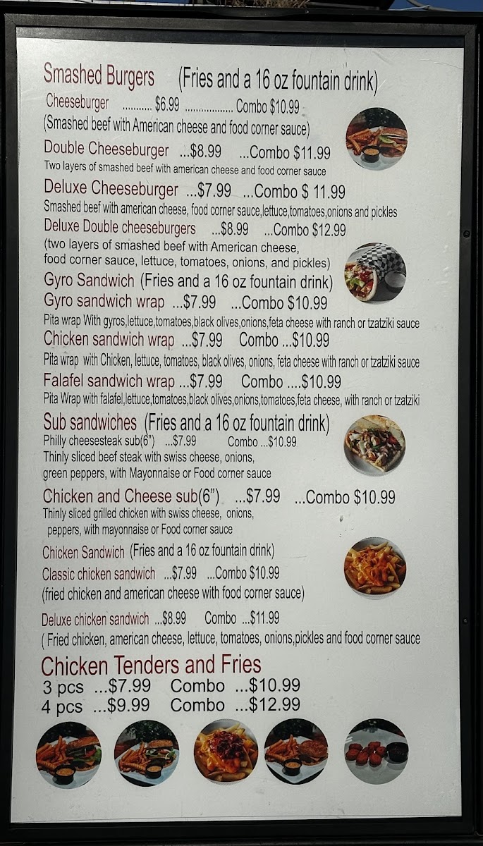 Welcome to Food Corner - Pizza, Gyros & Wings, a hidden gem in Nashville located at 2721 Clarksville Pike A. This vibrant eatery serves up a mouthwatering menu that promises to delight your taste buds. From their traditional Gyro Sandwiches, featuring perfectly cooked meat wrapped in warm pita, to the flavorful Chicken Gyro, every bite is a celebration of Greek flavors. Don’t miss their deliciously generous burgers, like the savory Bacon Cheeseburger.
